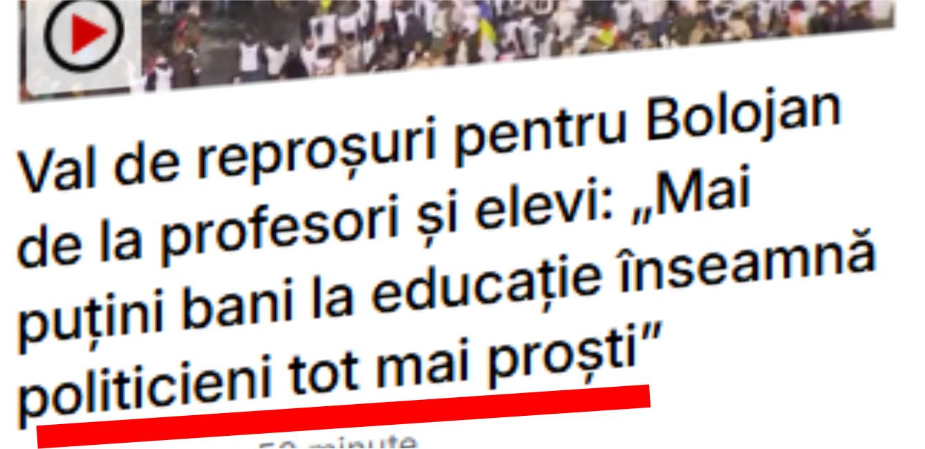 Aici avem de-a face cu un slogan care funcționează și așa, și viceversa, adică politicieni tot mai proști înseamnă mai puțini la bani la educație. Se vede că protestează oameni educați. Poate ultimii.