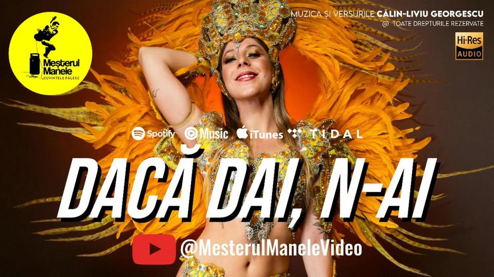 Îmi face plăcere să vă invit la încă o primă audiție a unui single, unul bailable como la mierda, piesa DACĂ DAI, N-AI, un cântec care are și o utilitate practică, că îl ții în telefon și când ajungi la ghișeu ca să-ți plătești taxele, dai Play și arunci telefonul cu sunetul la maxim pe gaura de la ghișeu, așa cum ai arunca o grenadă într-un buncăr înțesat de dușmani. Pe încercate. La orele 18:00 intră și pe YouTube, alături de un catalog de hituri care începe să se apropie de 200 de titluri. De ce? Dușmanii știu de ce. Links în comments.