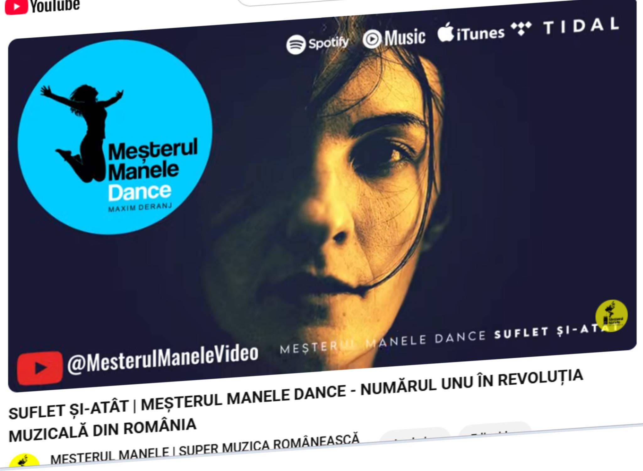 SUFLET ȘI-ATÂT a intrat pe canalul video Meșterul Manele pentru wow-divertismentul dumneavoastră muzical. Pentru curioși: nu am băgat piesa în Eurovisionul nostru, deoarece este mai bună de-atât. De diseară ăntră și pe Meșterul Manele Radio, și în Song Shop. Normal, pe Spotify, iTunes, YT Music și Tidal. Lumea cere. Link în comments.